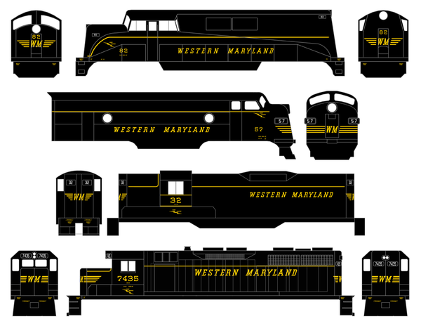 > Western Maryland Diesel Locomotive Yellow Speed Letter - Decal - Choose Scale