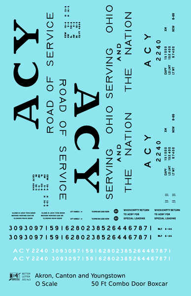 Akron Canton and Youngstown 50 Ft Boxcar Black ACY - Decal - Choose Scale