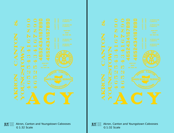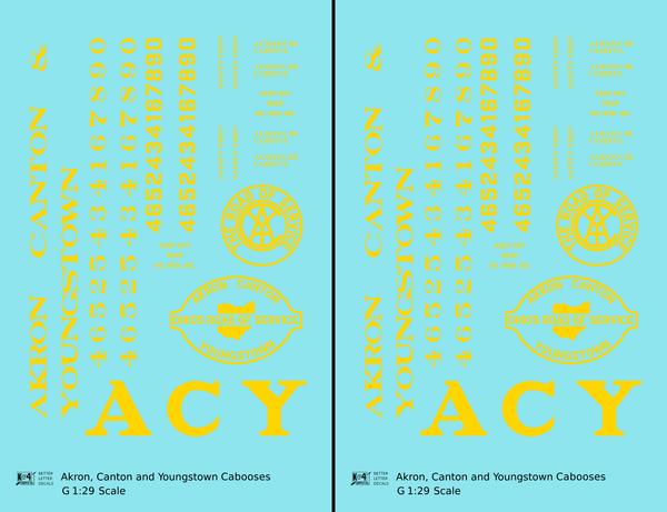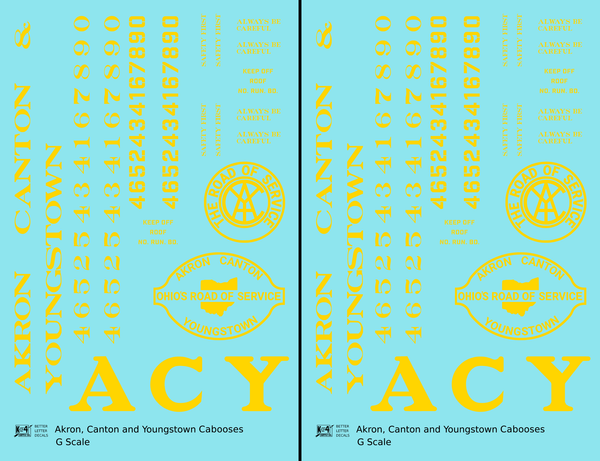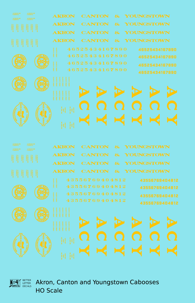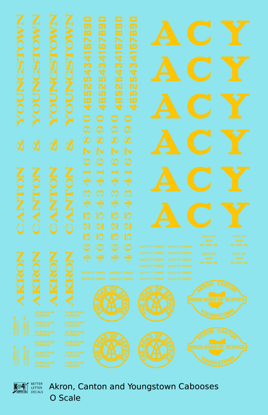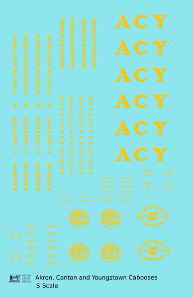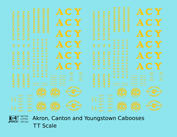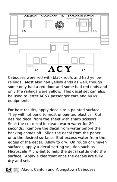 Akron Canton and Youngstown Caboose Passenger Or MOW Car Yellow ACY - Decal - Choose Scale