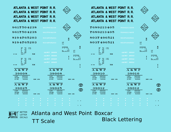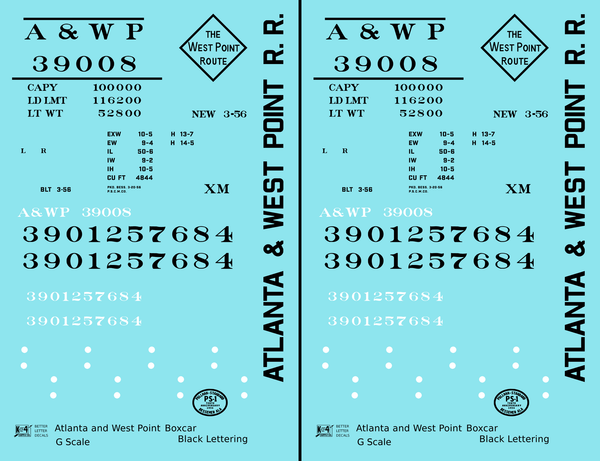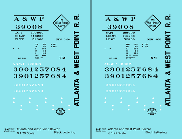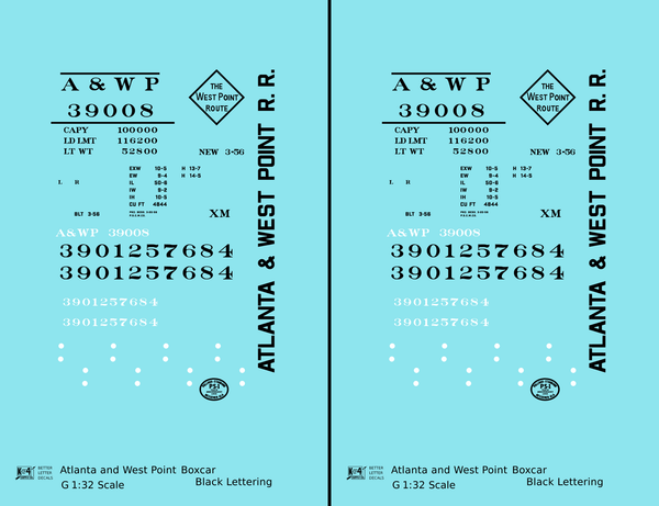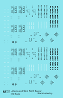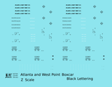 Atlanta and West Point 50 Ft Boxcar Black A&WP - Decal - Choose Scale