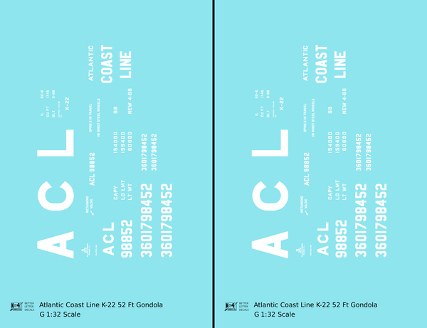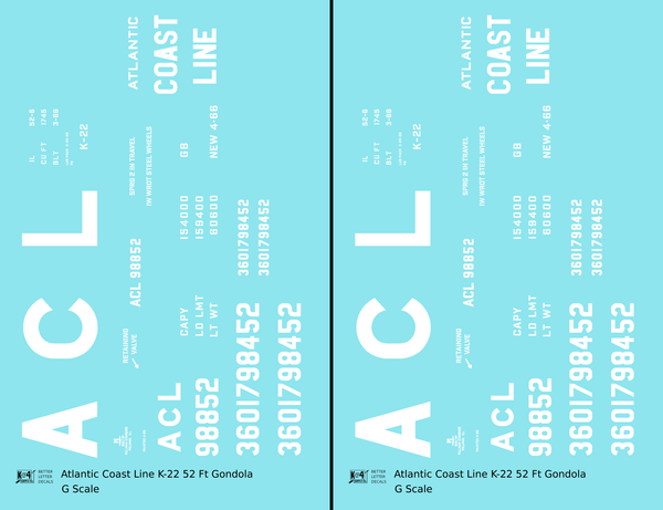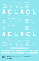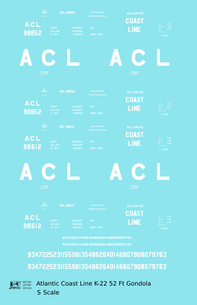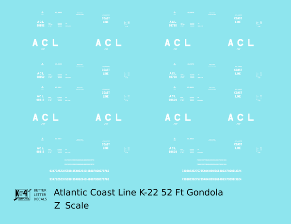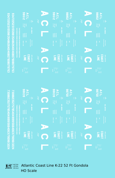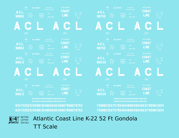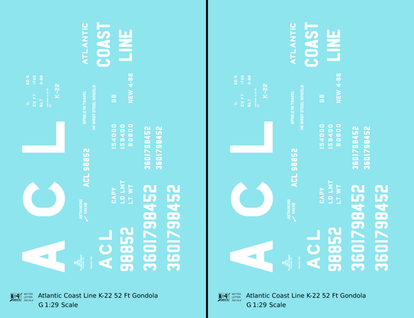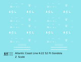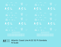 Atlantic Coast Line K-22 52 Ft Gondola White - Decal - Choose Scale