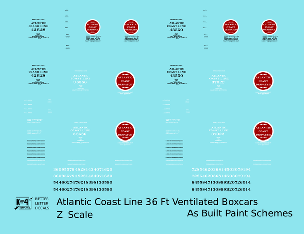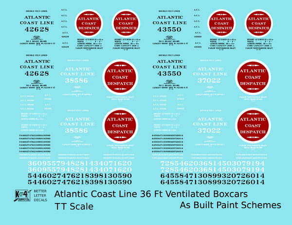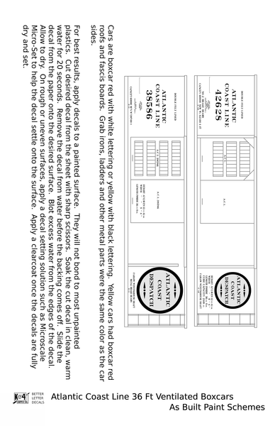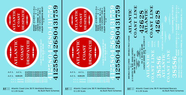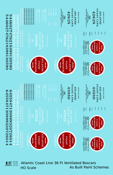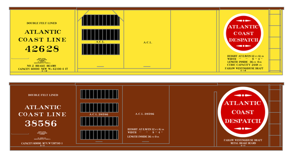 Atlantic Coast Line Ventilated Watermelon Boxcar Black, White, Red As Built Schemes - Decal - Choose Scale