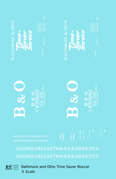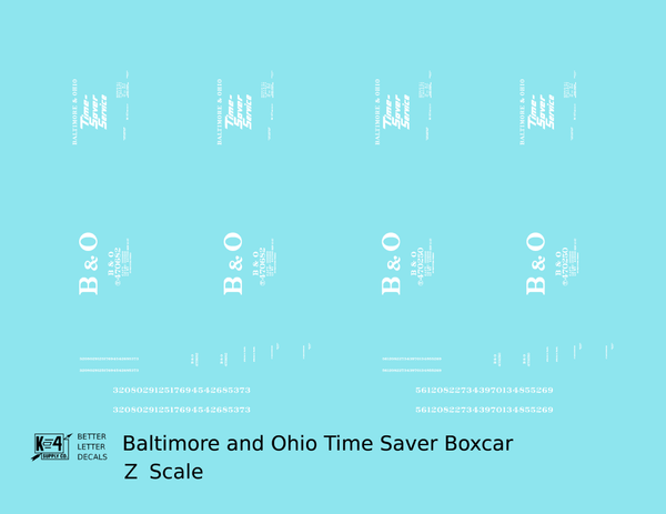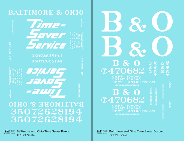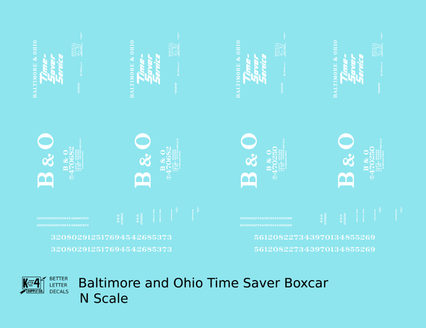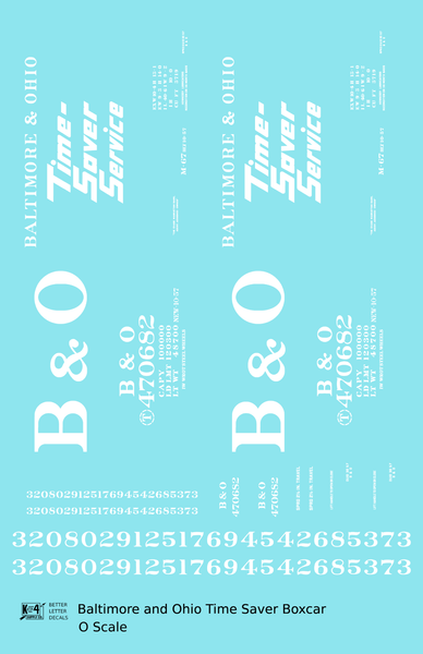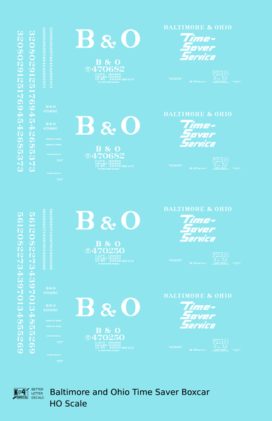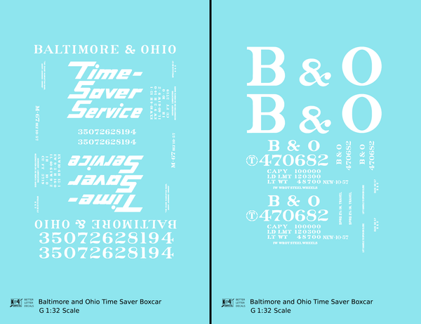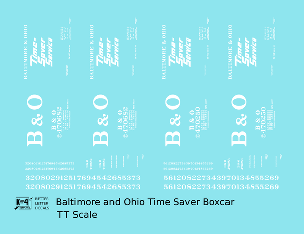 Baltimore and Ohio 40 Ft Boxcar White Time Saver Service - Decal - Choose Scale