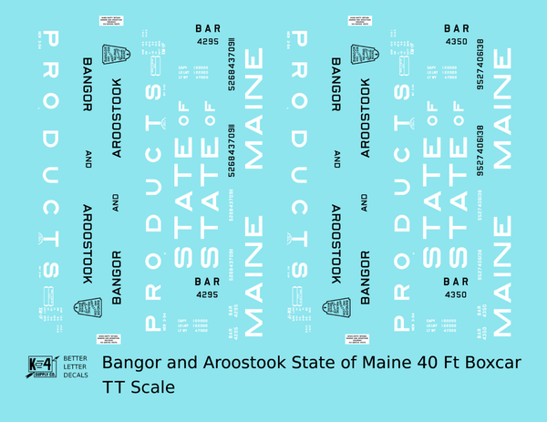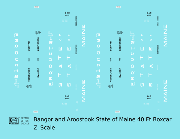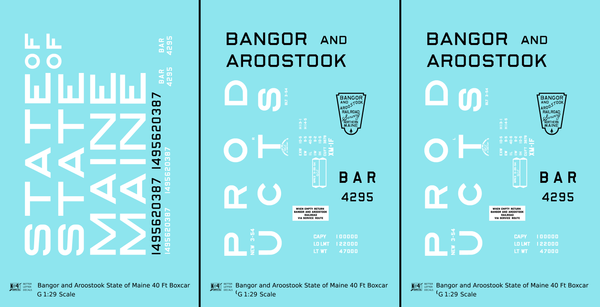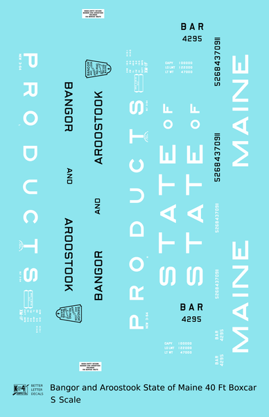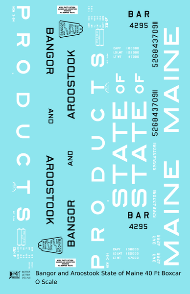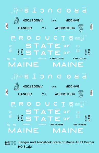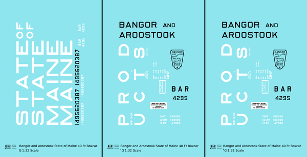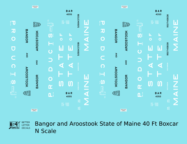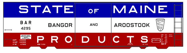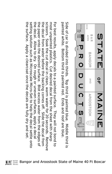 Bangor and Aroostook 40 Ft Boxcar Black and White State Of Maine - Decal - Choose Scale