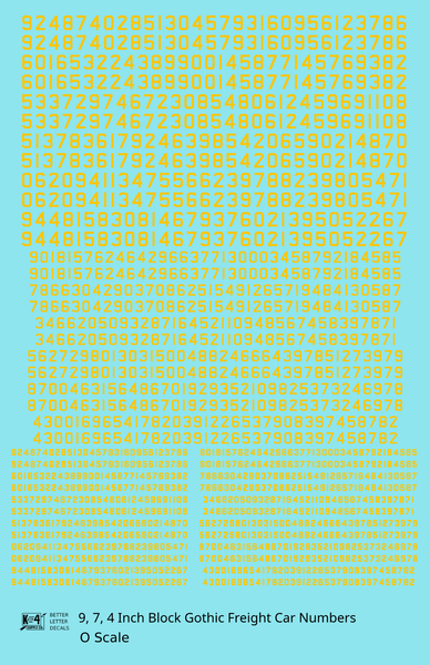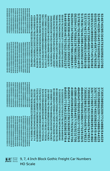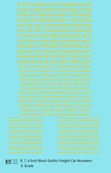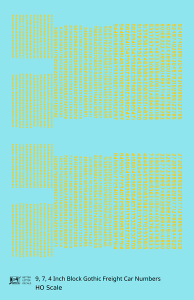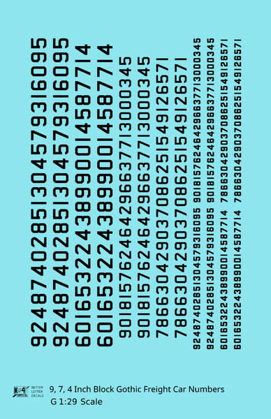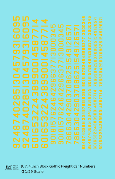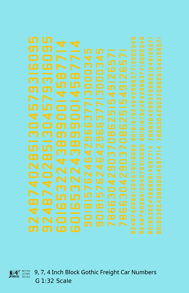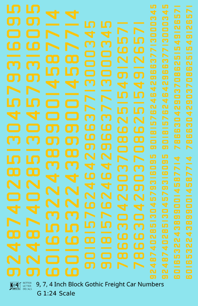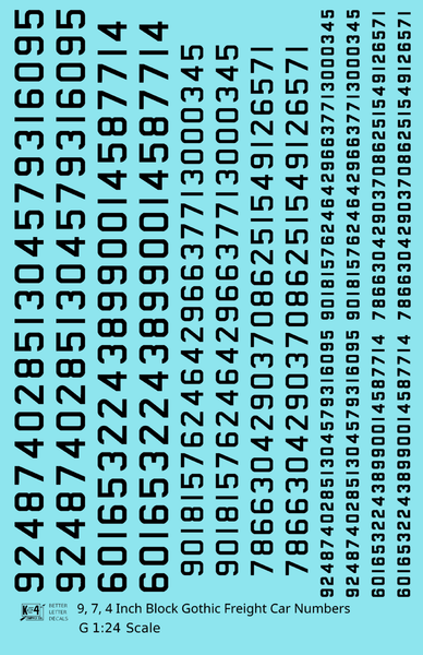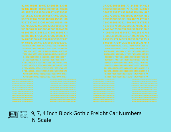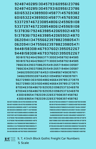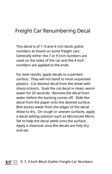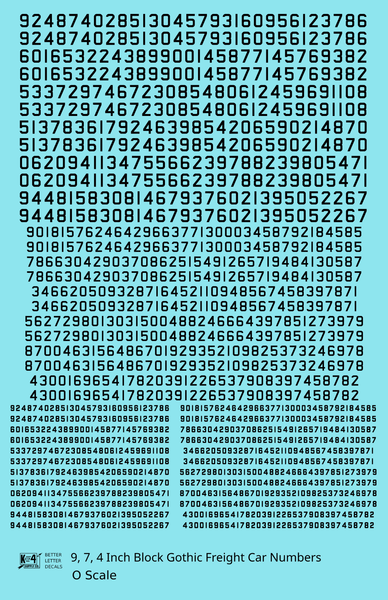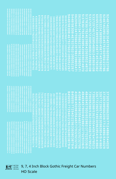 Block Gothic Freight Car Numbers White 9, 7 and 4 Inch Renumber - Decal - Choose Scale and Color