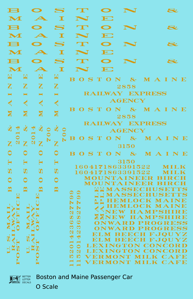 Boston and Maine Standard Passenger Car Dulux Yellow - Decal - Choose Scale