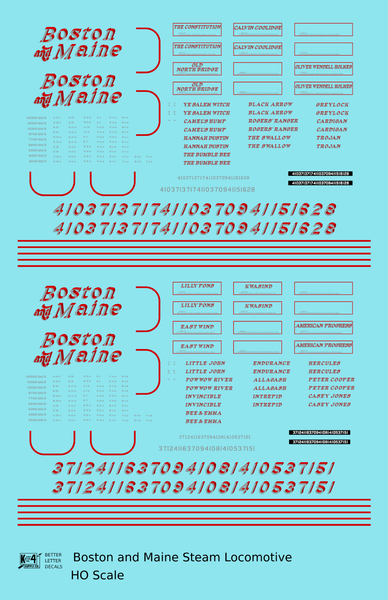 Boston and Maine Steam Locomotive Silver and Red - Decal - Choose Scale