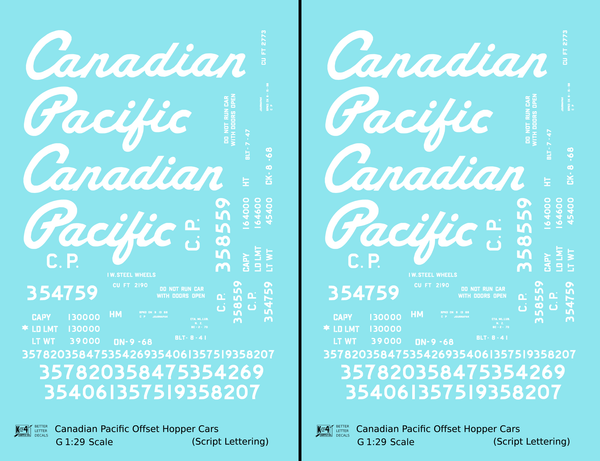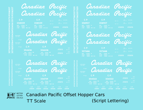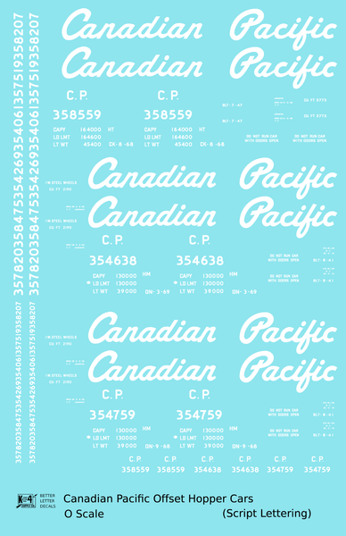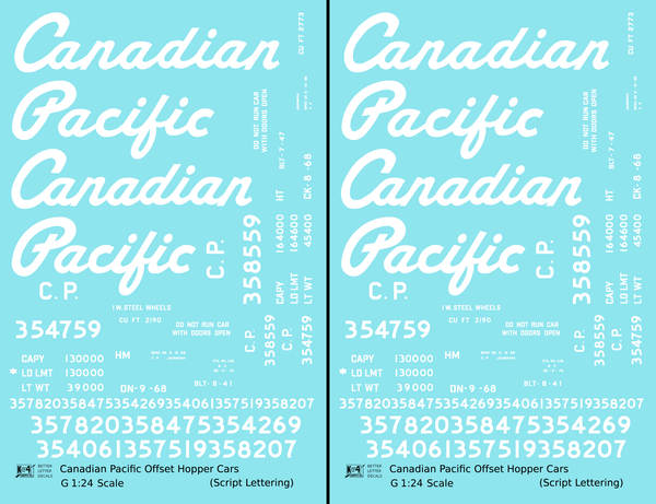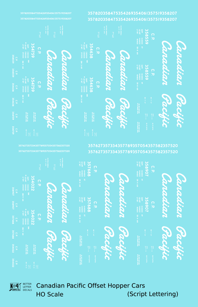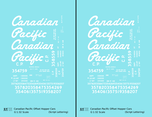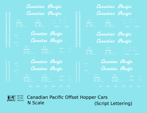 Canadian Pacific Offset Hopper White Script - Decal - Choose Scale