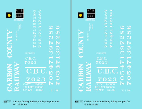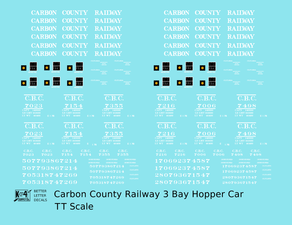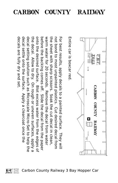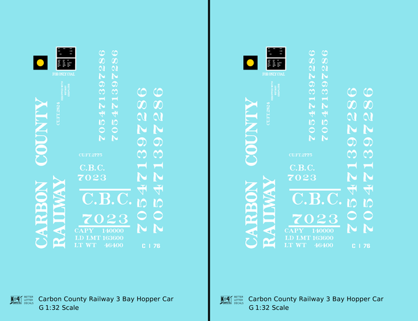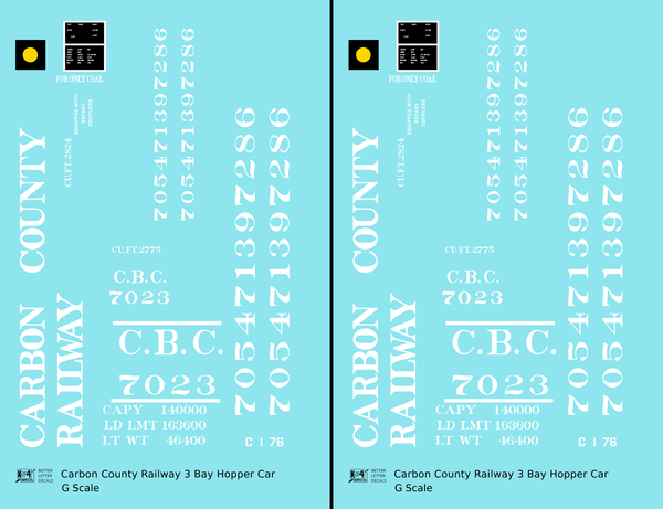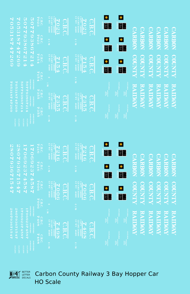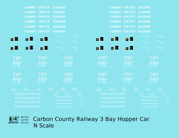 Carbon County Railway Three Bay Hopper White Utah - Decal - Choose Scale