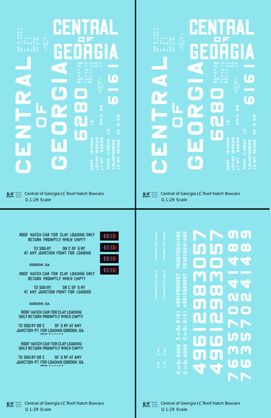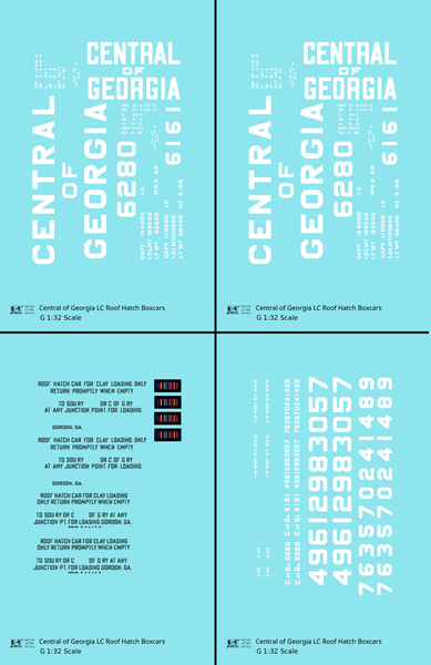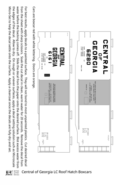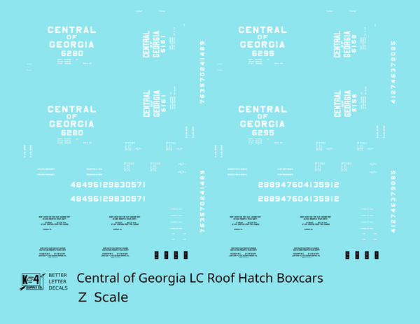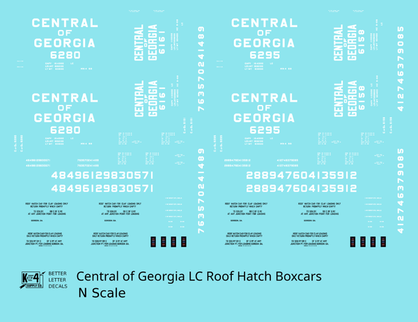 Central Of Georgia Roof Hatch Boxcar White Block Letter - Decal - Choose Scale