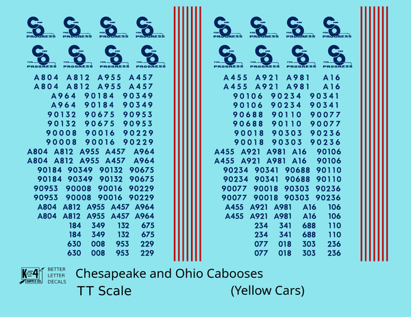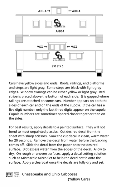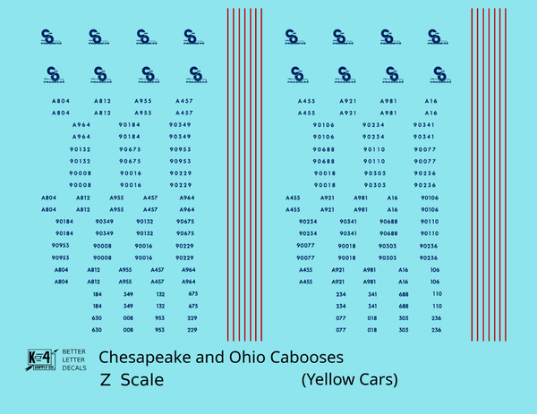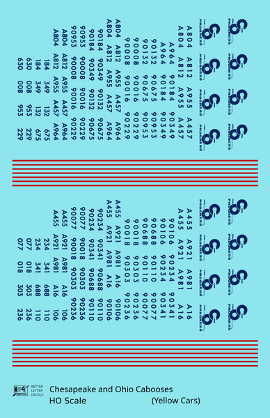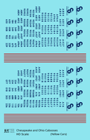 Chesapeake and Ohio Yellow Caboose Blue and Red - Decal - Choose Scale