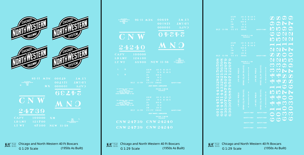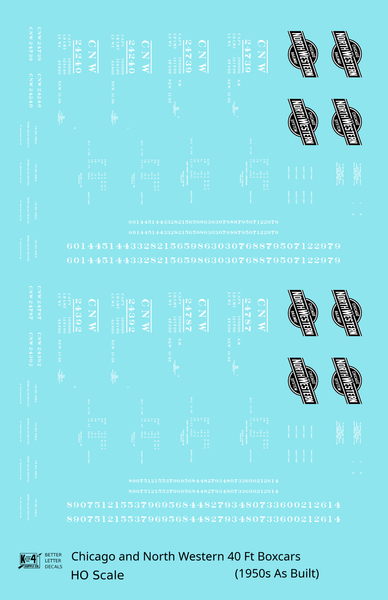 Chicago and North Western 40 Ft Boxcar White and Black Railway/System Herald - Decal - Choose Scale