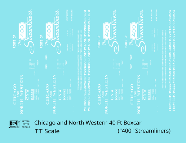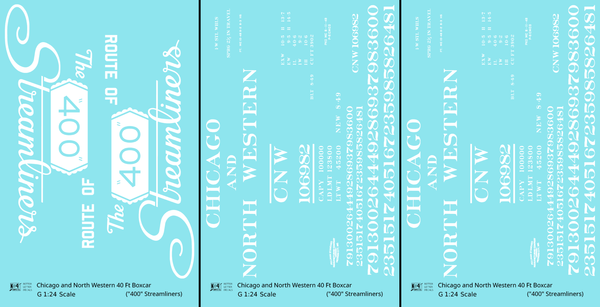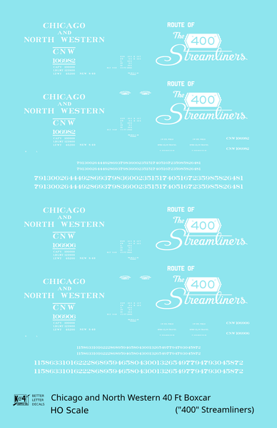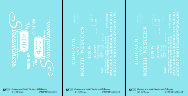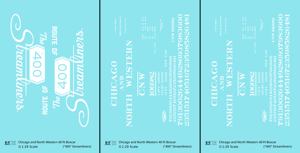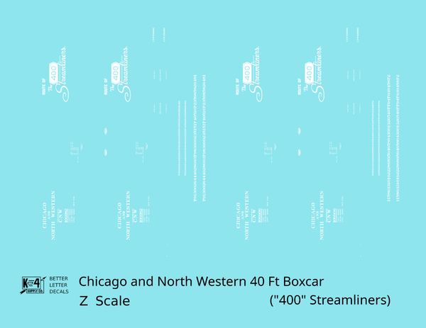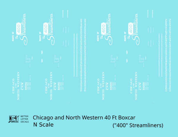 Chicago and North Western 40 Ft Boxcar White Route Of the 400 Streamliners - Decal - Choose Scale