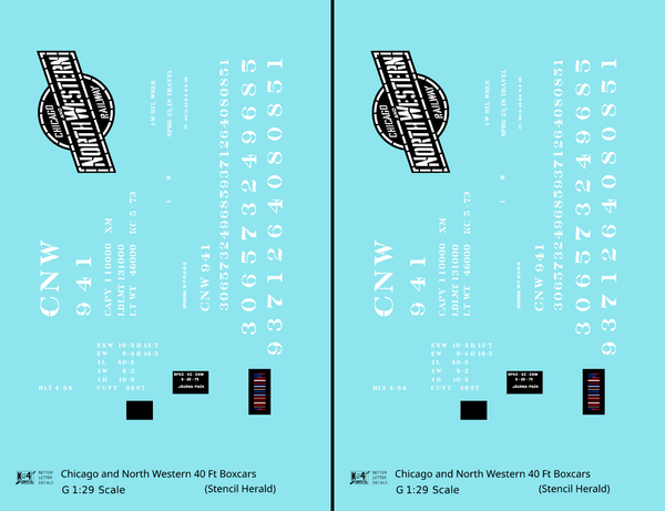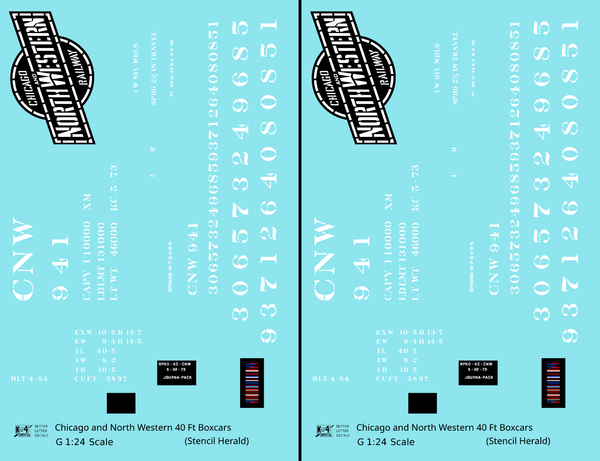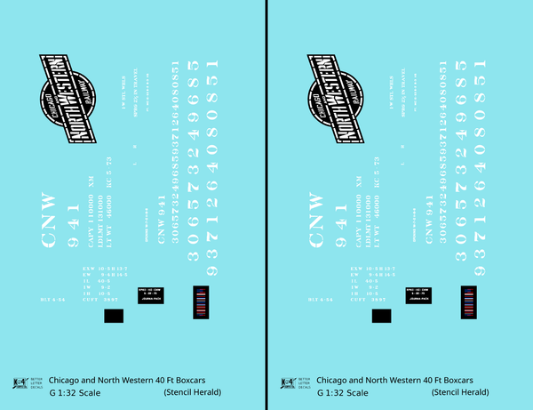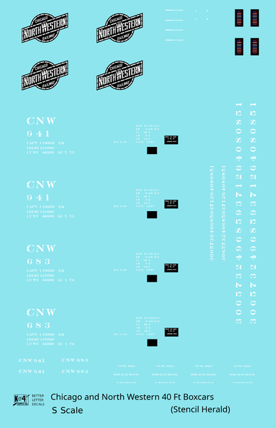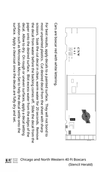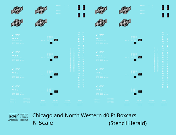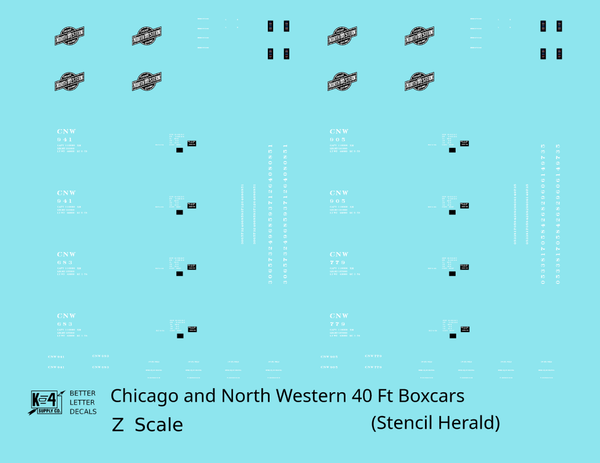 Chicago and North Western 40 Ft Boxcar White Stencil Herald - Decal - Choose Scale