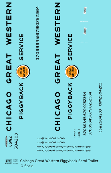 Chicago Great Western Piggyback Semi Trailer Black - Decal - Choose Scale