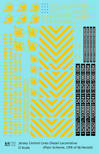 CNJ Jersey Central Lines Diesel Locomotive Yellow CRRofNJ Herald - Decal - Choose Scale