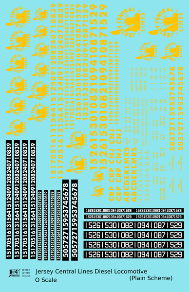 CNJ Jersey Central Lines Diesel Locomotive Yellow JCL Herald - Decal - Choose Scale
