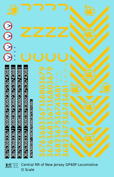 CNJ Jersey Central Lines EMD GP40P Locomotive Yellow Big CNJ - Decal - Choose Scale