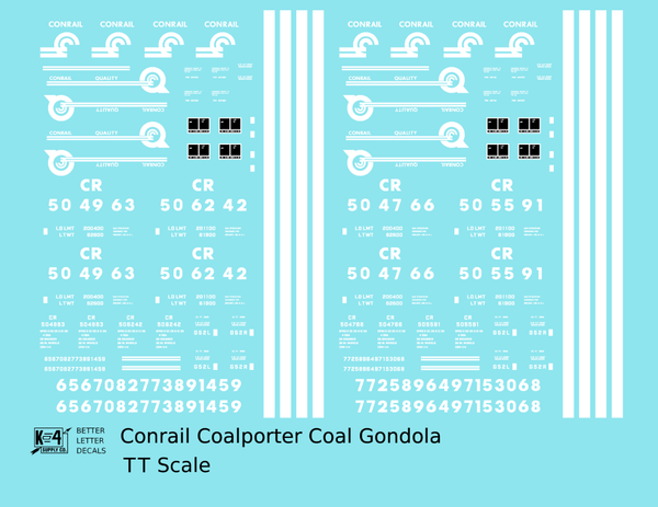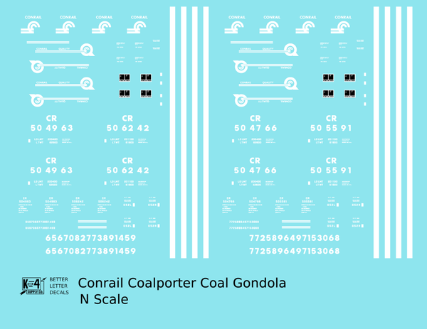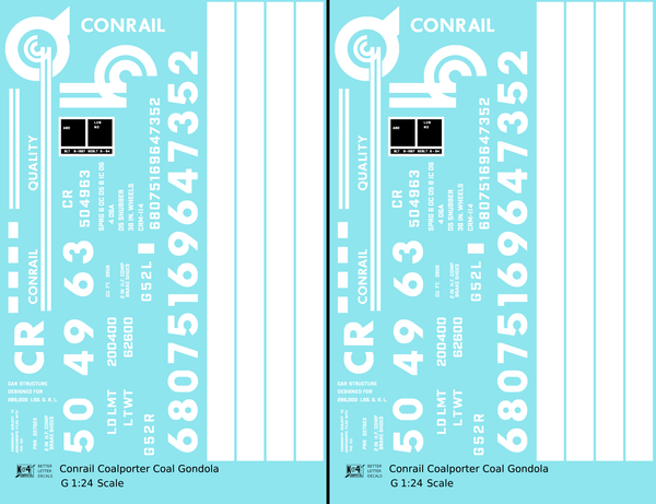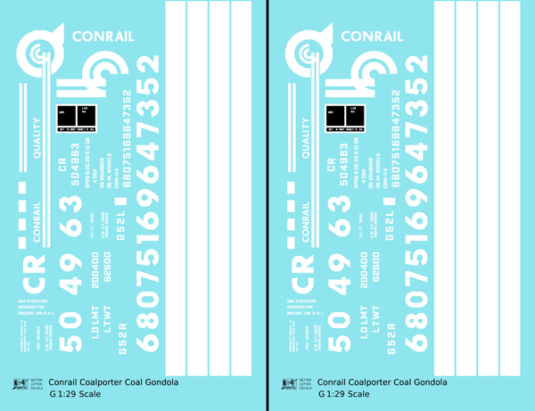 Conrail Coalporter Coal Gondola White - Decal - Choose Scale