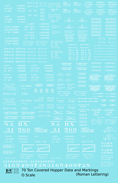 Data Only 70 Ton Covered Hopper Railroad Roman - Decal - Choose Scale and Color