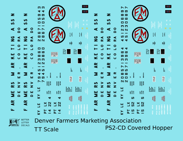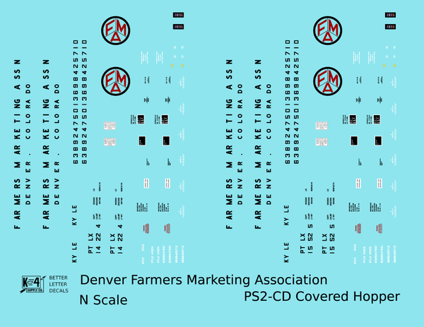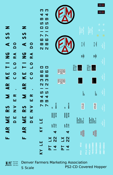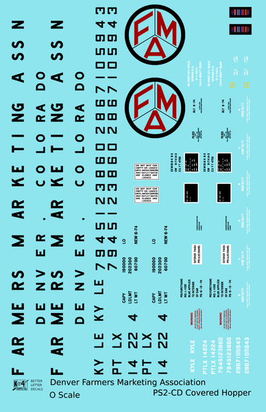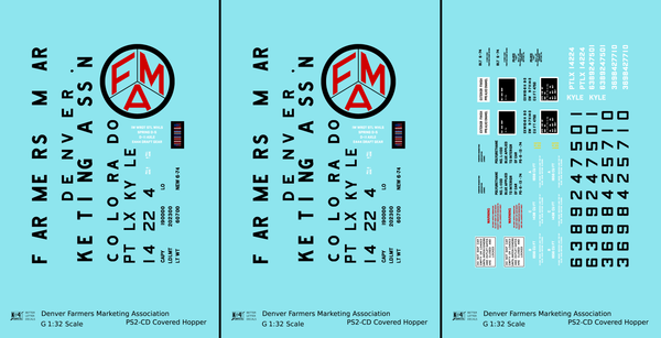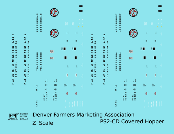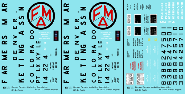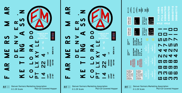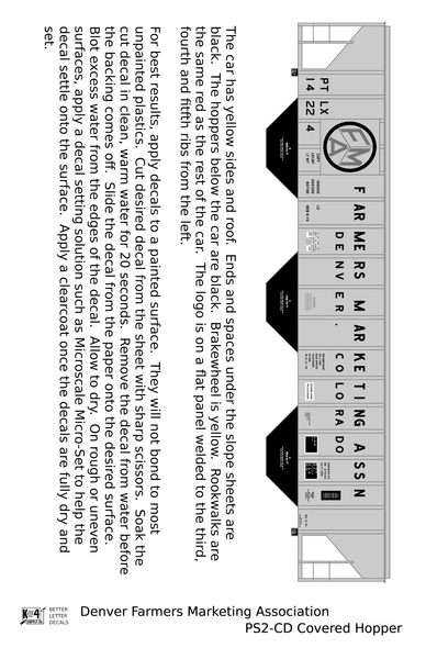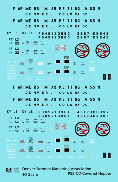 Denver Farmers Marketing Association PS2-CD Covered Hopper Black and Red - Decal - Choose Scale