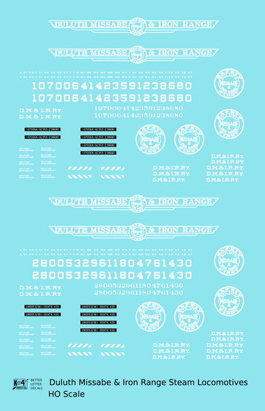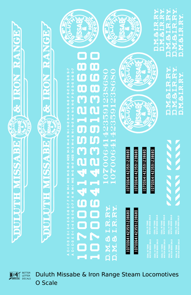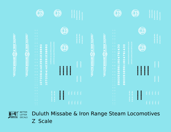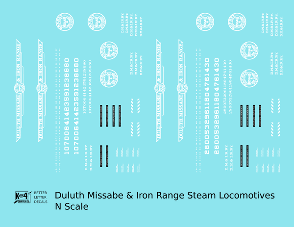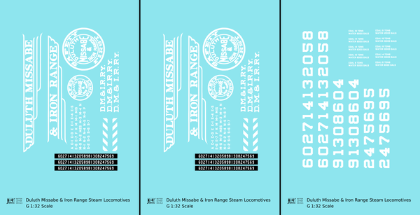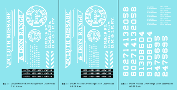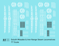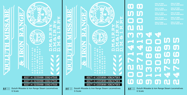 Duluth, Missabe and Iron Range Steam Locomotive White - Decal - Choose Scale