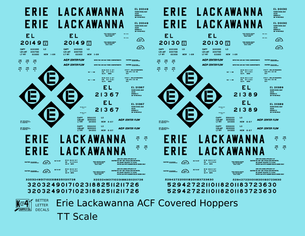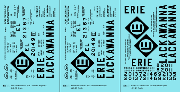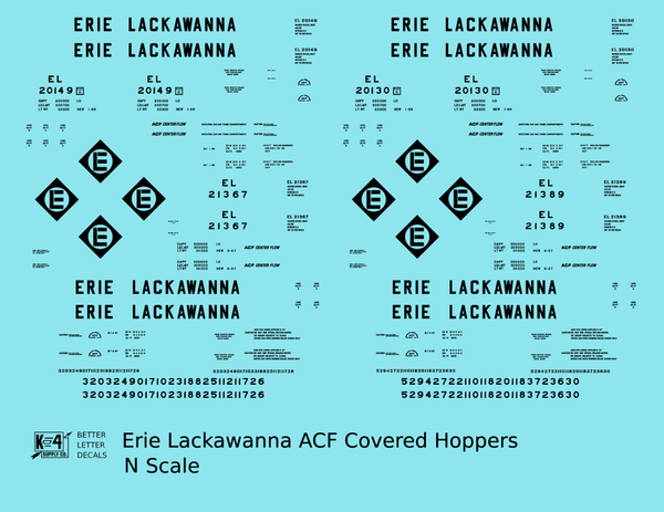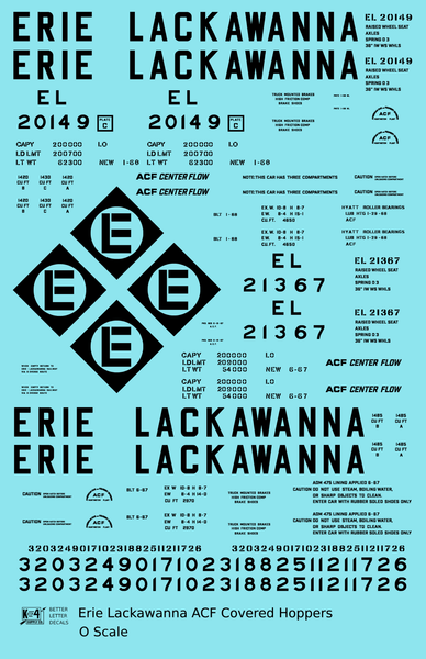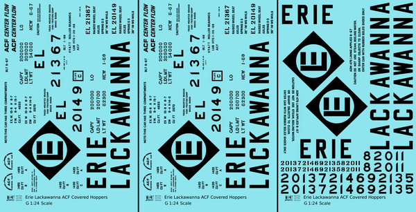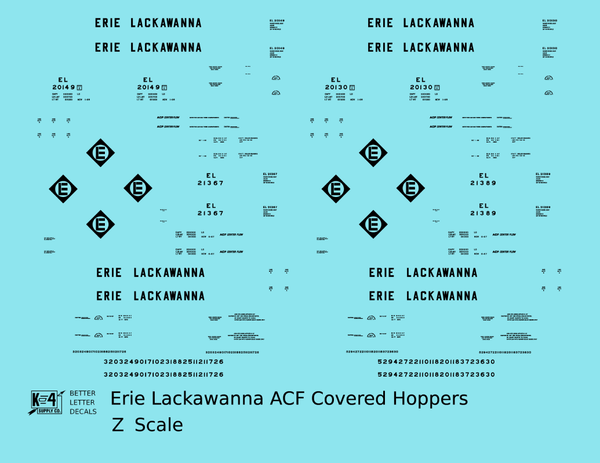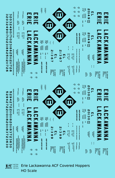 Erie Lackawanna ACF Covered Hopper Black - Decal - Choose Scale