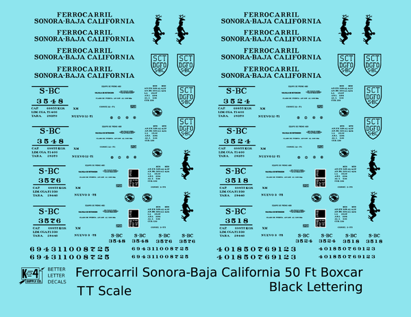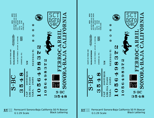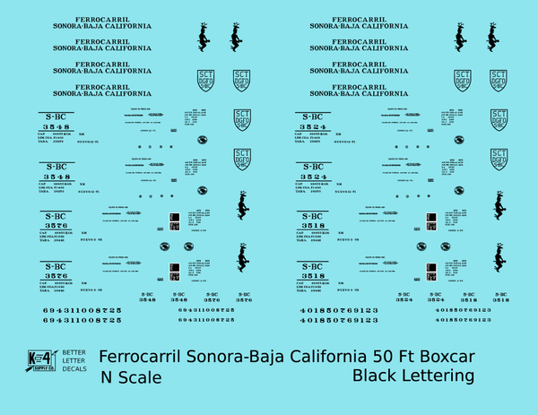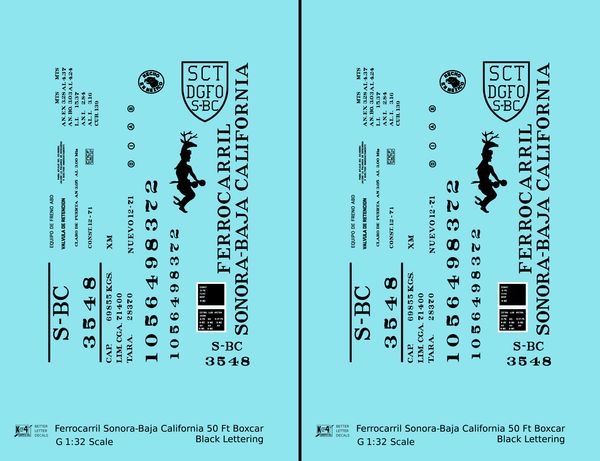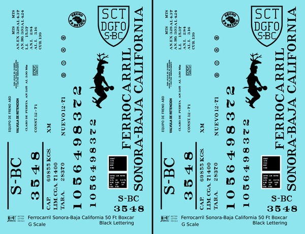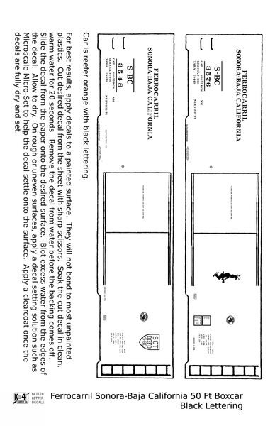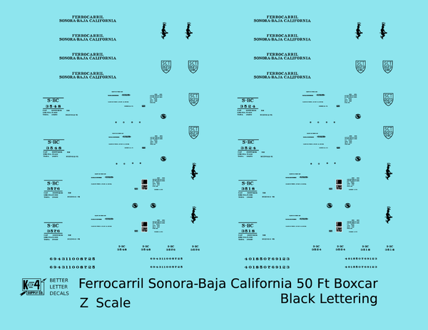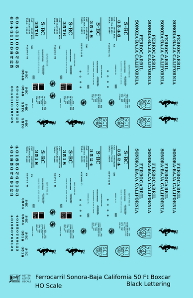 Ferrocarril Sonora Baja California 50 Ft Boxcar Black SBC Mexico - Decal - Choose Scale