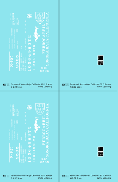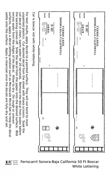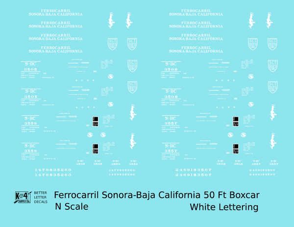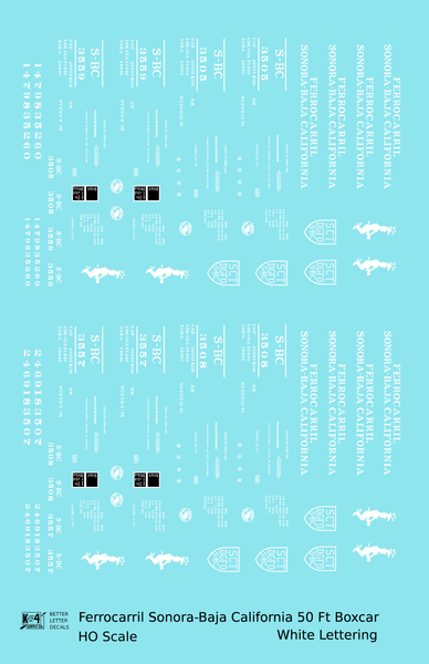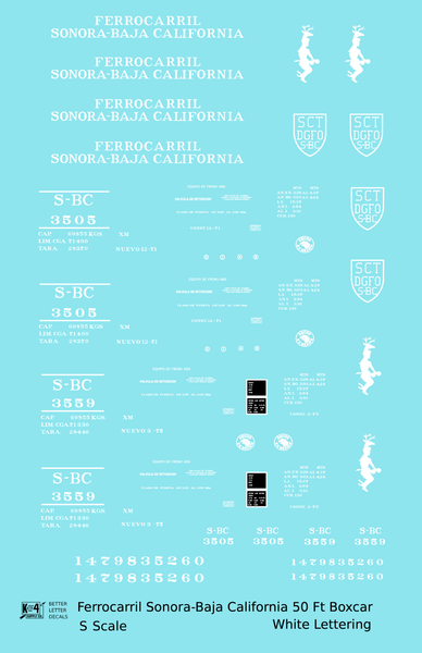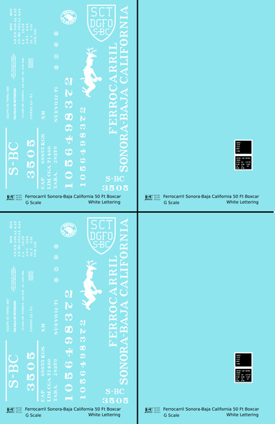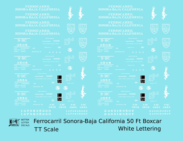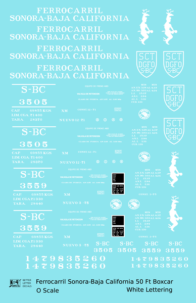Ferrocarril Sonora Baja California 50 Ft Boxcar White SBC Mexico - Decal - Choose Scale