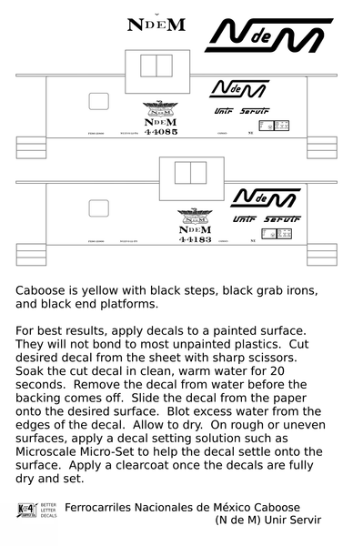 Ferrocarriles Nacionales De Mexico Caboose NDEM Unir Servir - Decal - Choose Scale