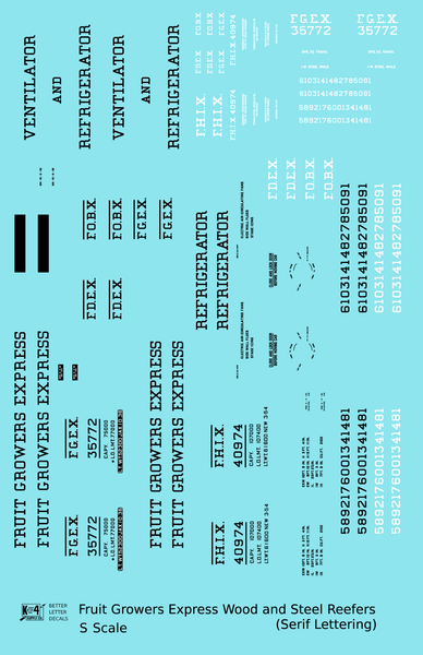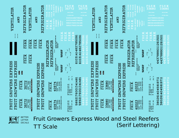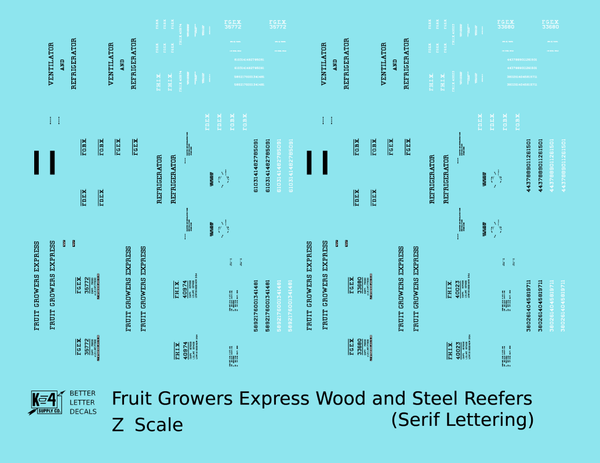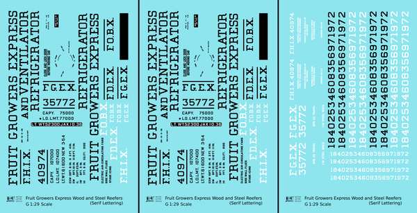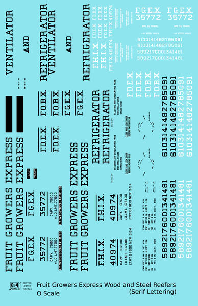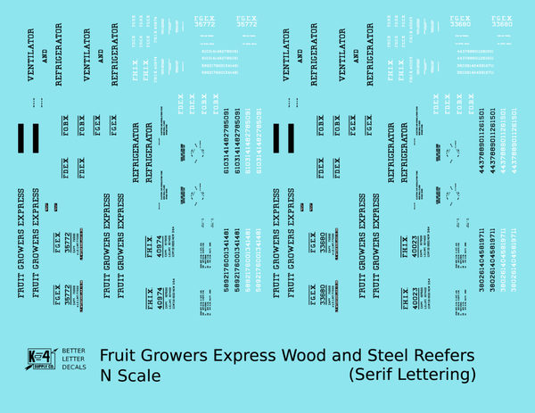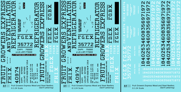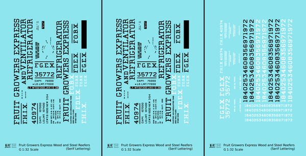 Fruit Growers Express 40 Ft Reefer Black Serif - Decal - Choose Scale