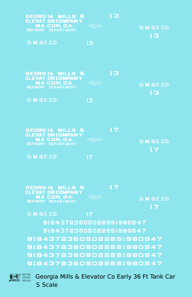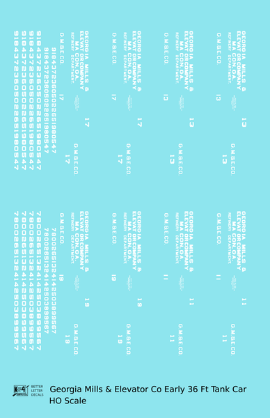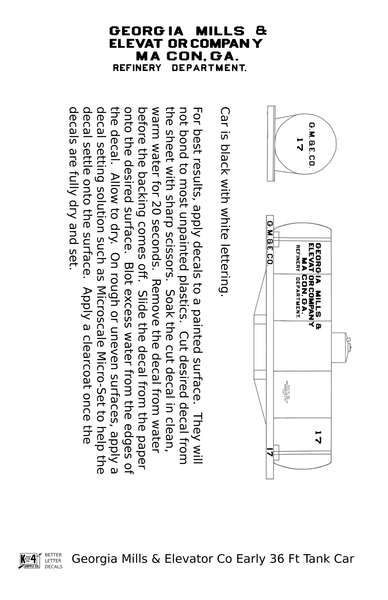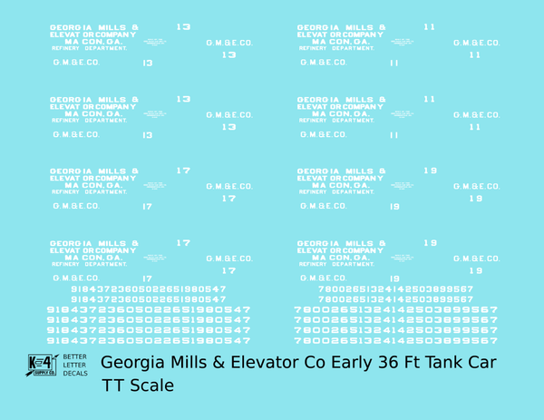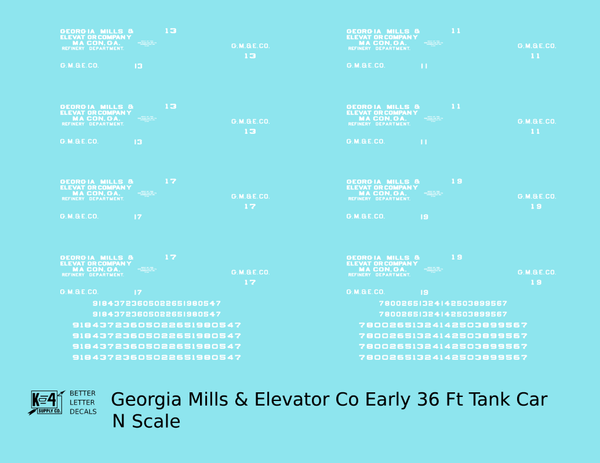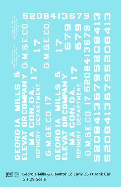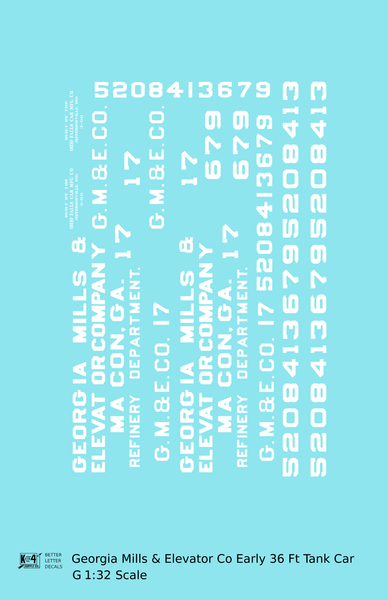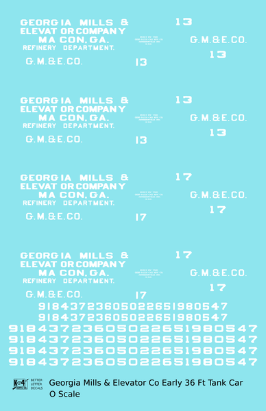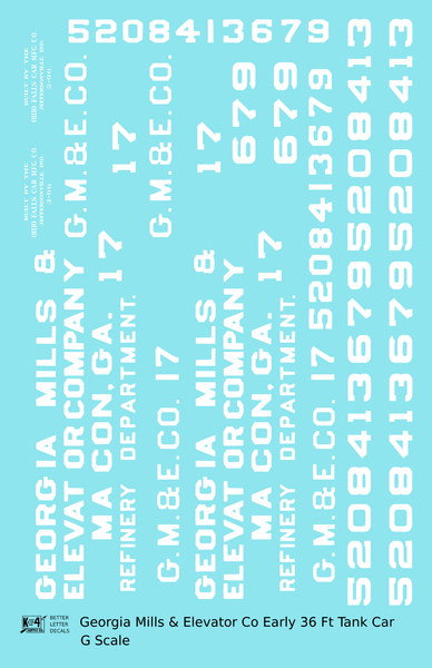 Georgia Mills and Elevator Co Early Tank Car White Macon - Decal - Choose Scale