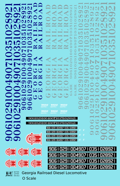 Georgia Railroad Diesel Locomotive Silver and Blue - Decal - Choose Scale
