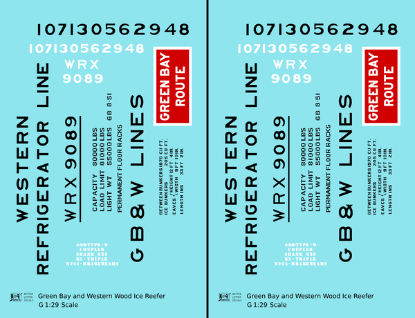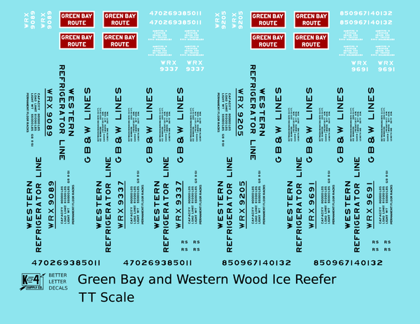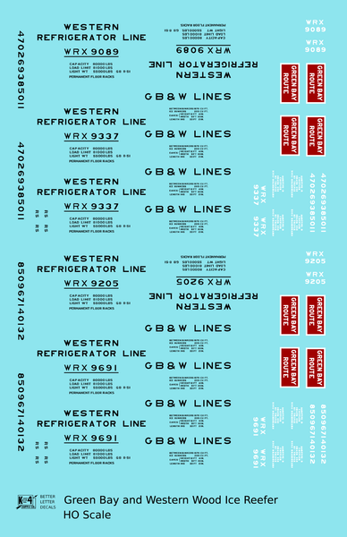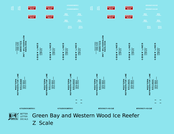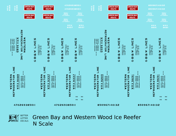 Green Bay and Western Wood Ice Reefer Black and Red - Decal - Choose Scale