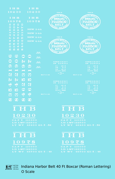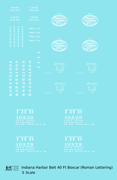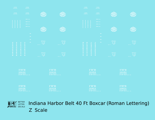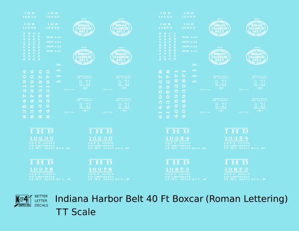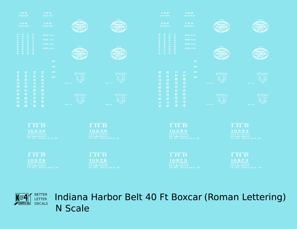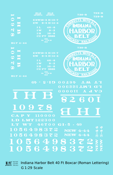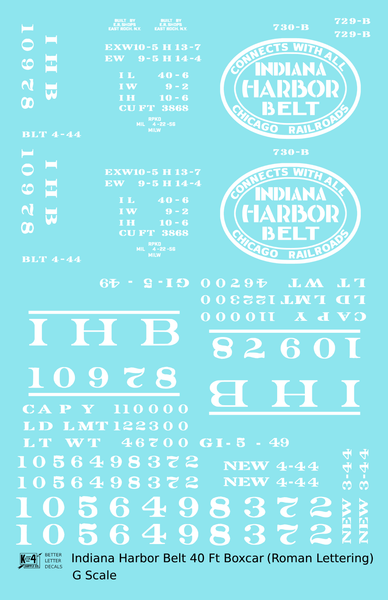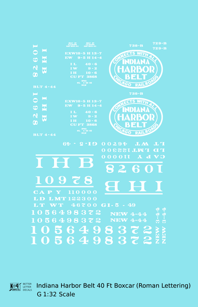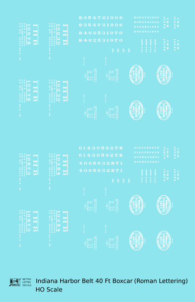 Indiana Harbor Belt 40 Ft Boxcar White Roman Lettering - Decal - Choose Scale