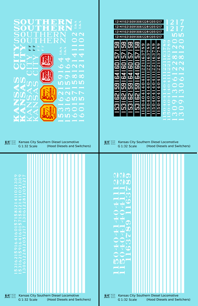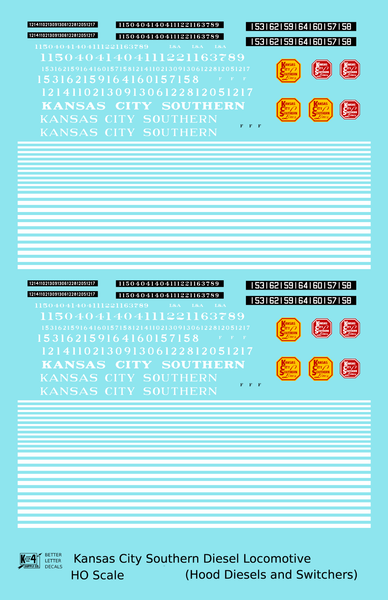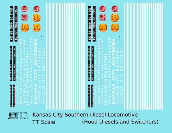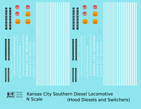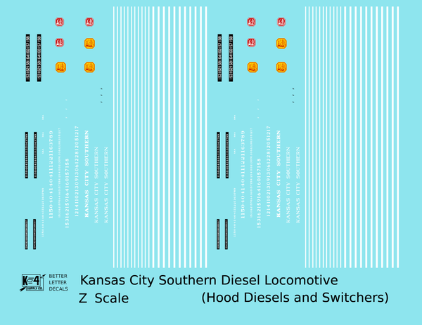 Kansas City Southern Hood Diesel Or Switcher White Black Scheme - Decal - Choose Scale