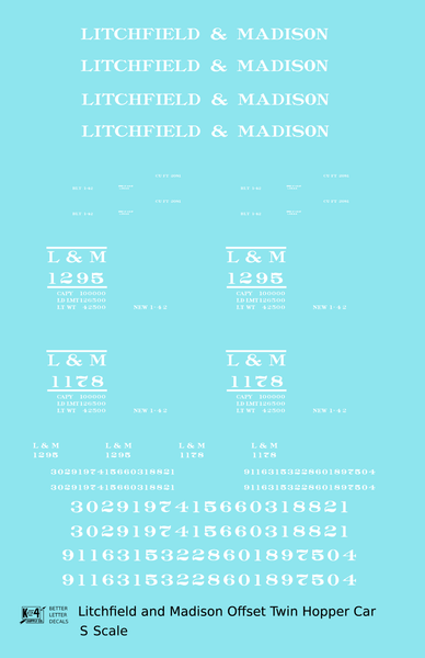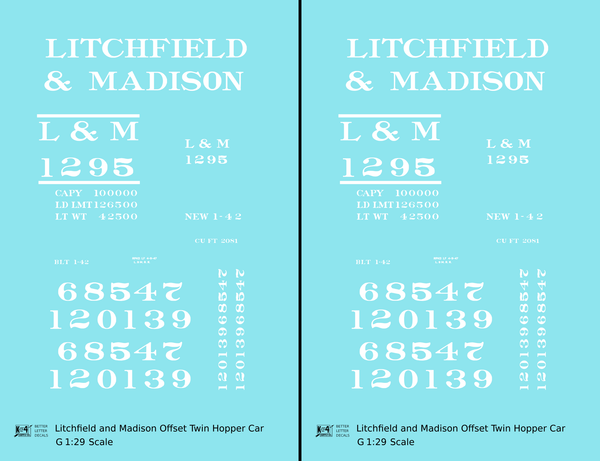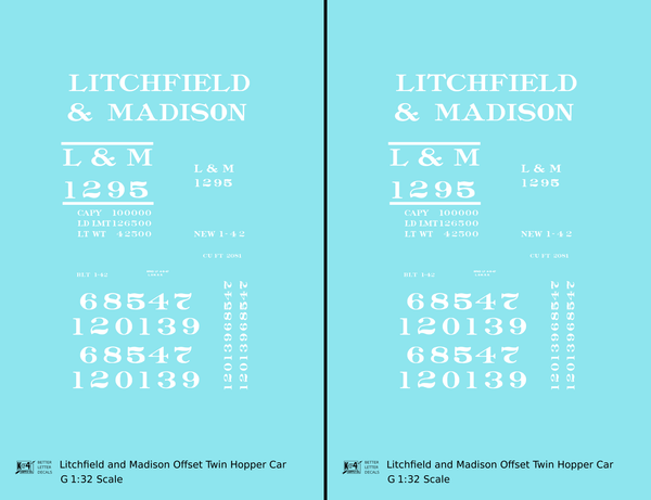Litchfield and Madison Offset Twin Hopper White - Decal - Choose Scale