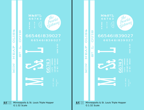 Minneapolis and St Louis Three Bay Hopper MSTL - Decal - Choose Scale