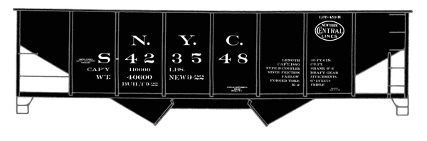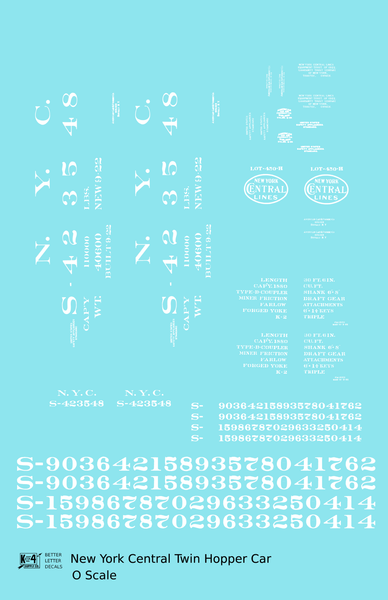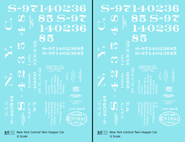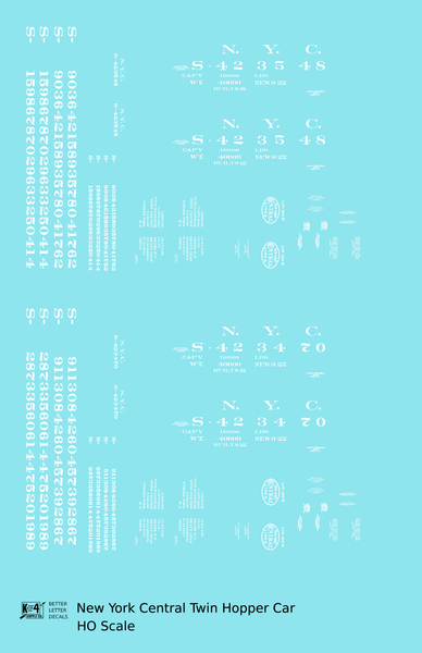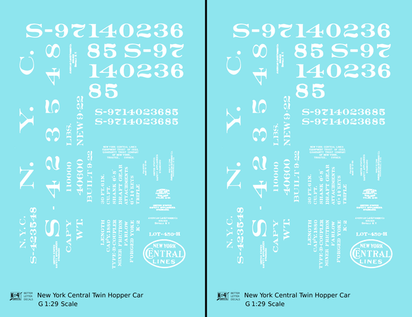 New York Central Twin Hopper Car White - Decal - Choose Scale