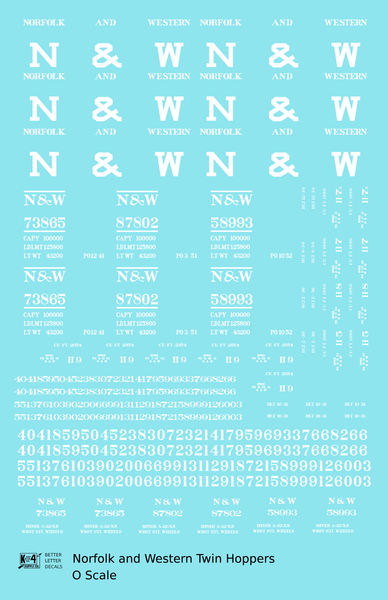 Norfolk and Western Ribbed Twin Hopper White - Decal - Choose Scale