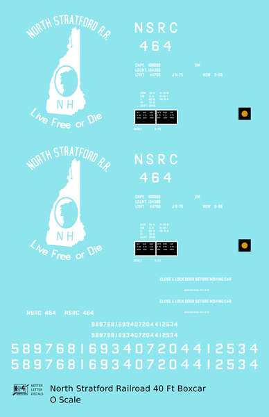 North Stratford Railroad 40 Ft Boxcar White New Hampshire - Decal - Choose Scale