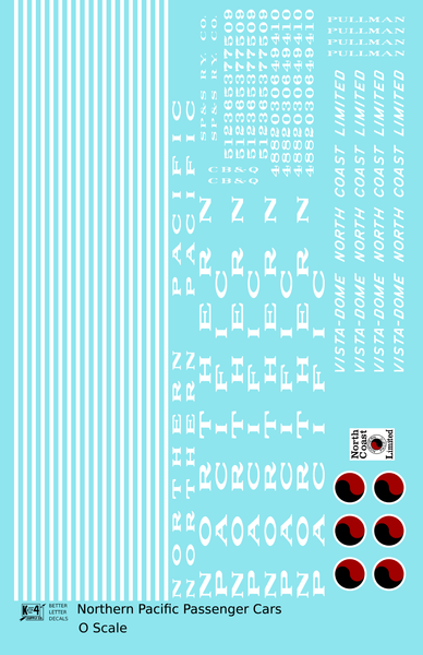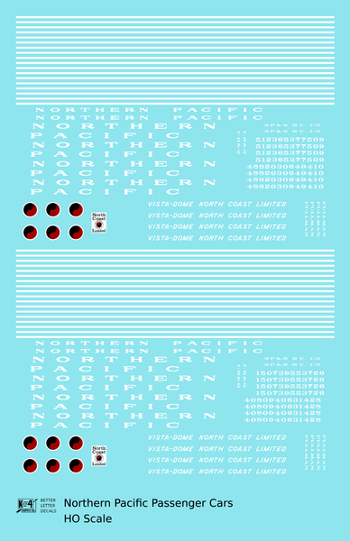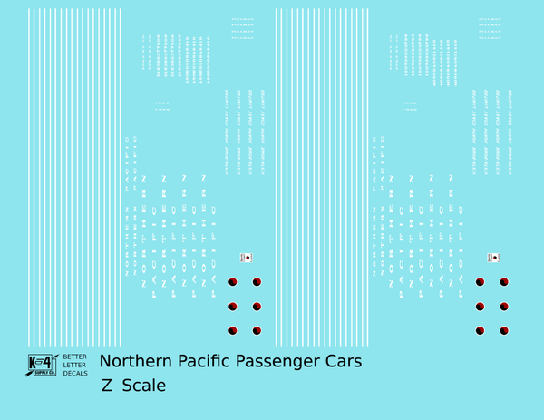 Northern Pacific Passenger Car White - Decal - Choose Scale