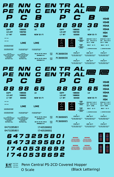 Penn Central PS2-CD Covered Hopper Black For Gray Car - Decal - Choose Scale