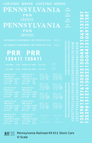 Pennsylvania Railroad K9, K11 Stock Car White - Decal - Choose Scale