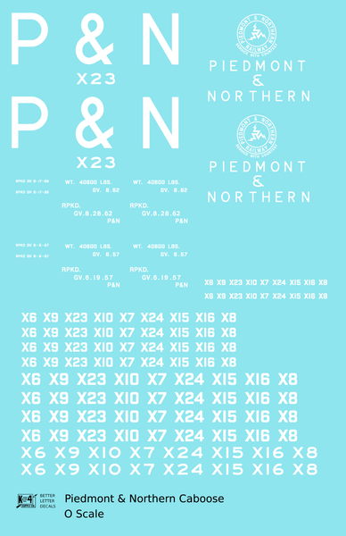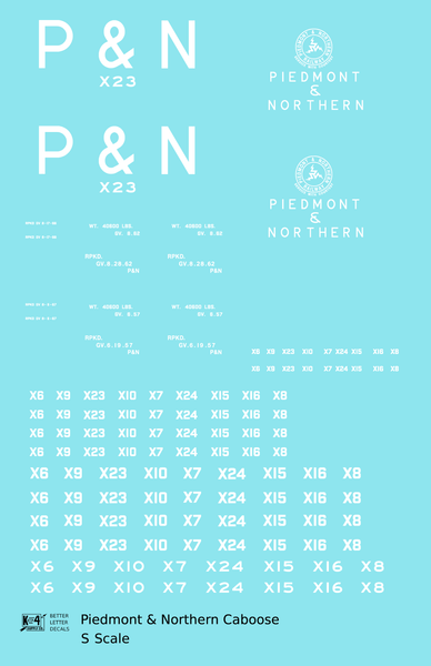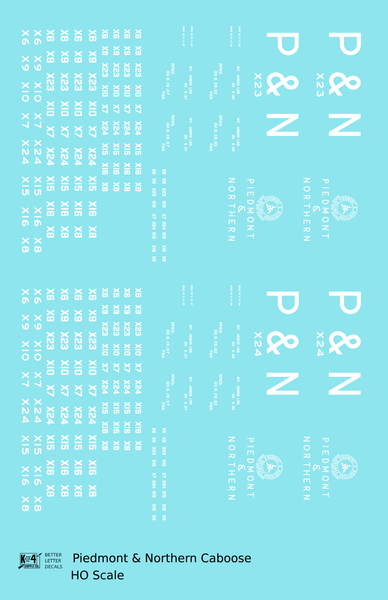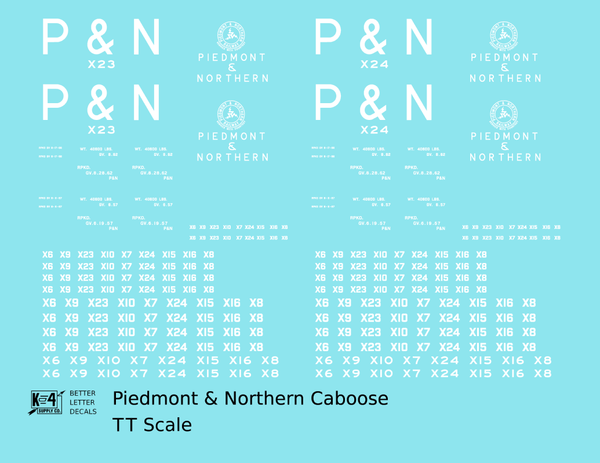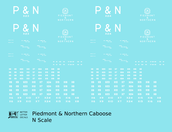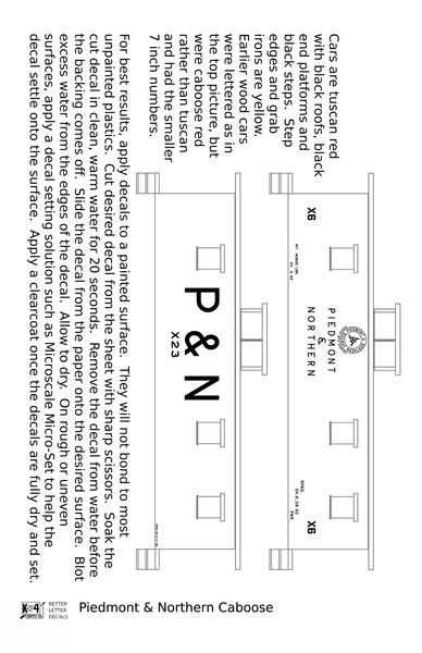 Piedmont and Northern Caboose White - Decal - Choose Scale