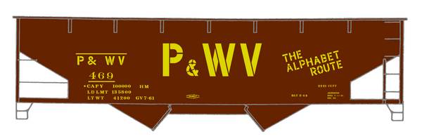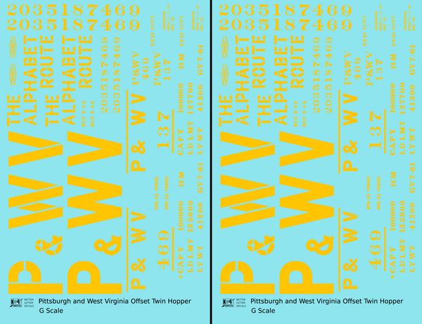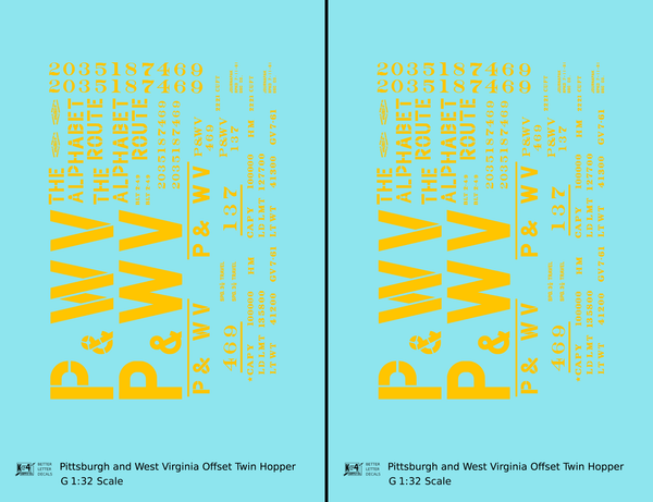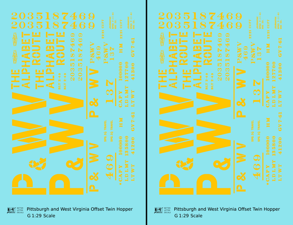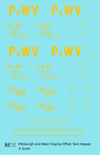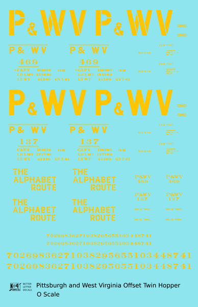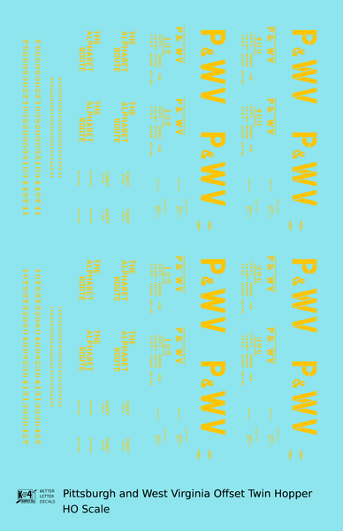 Pittsburgh and West Virginia Alphabet Route Hopper Car Yellow - Decal - Choose Scale