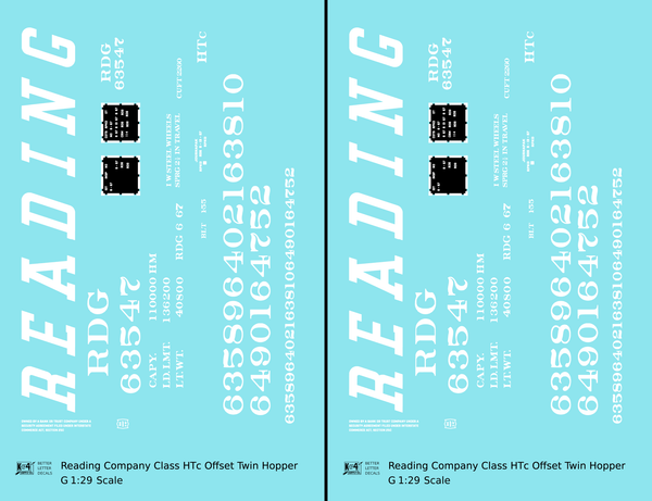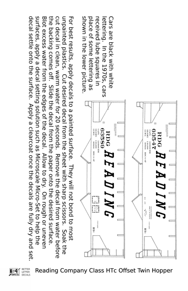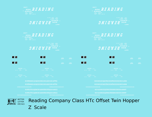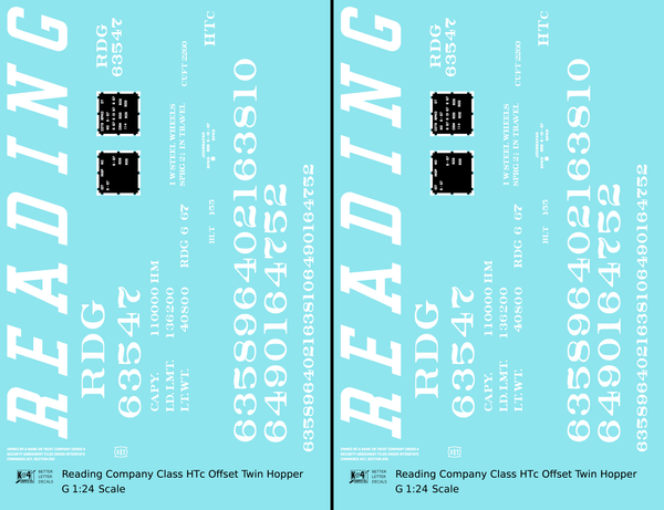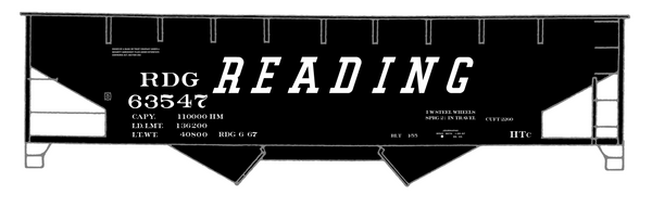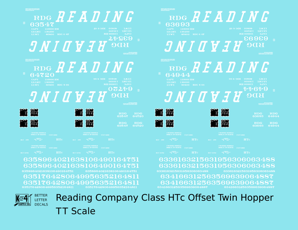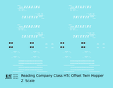 Reading Class HTC Offset Twin Hopper White - Decal - Choose Scale