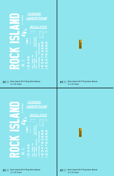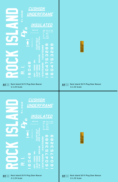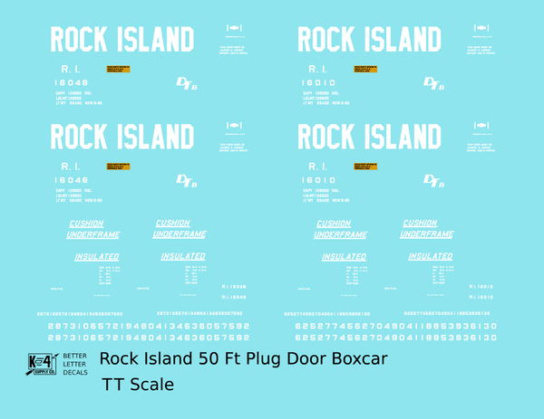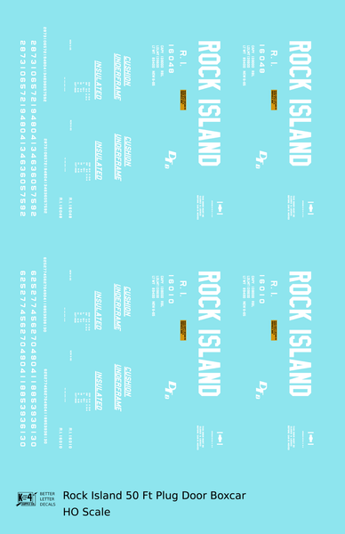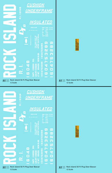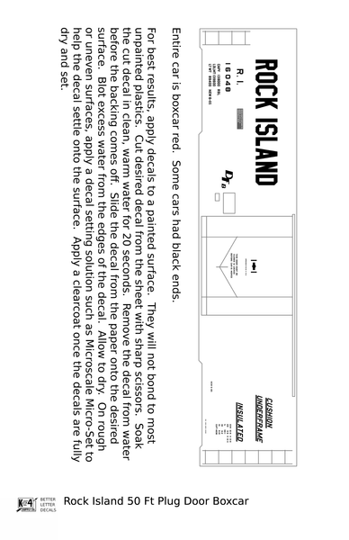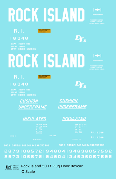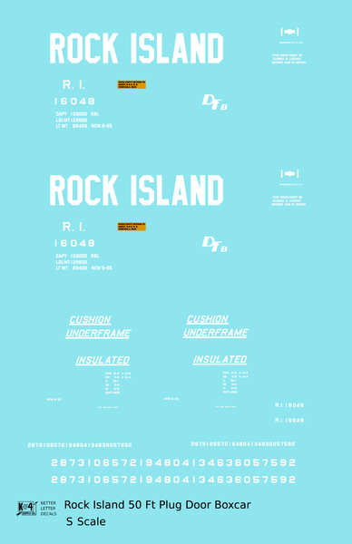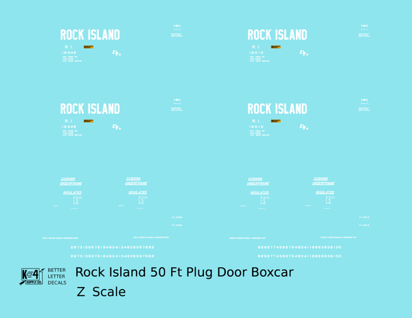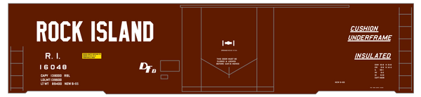 Rock Island 50 Ft Plug Door Boxcar Cushion Underframe Insulated - Decal - Choose Scale