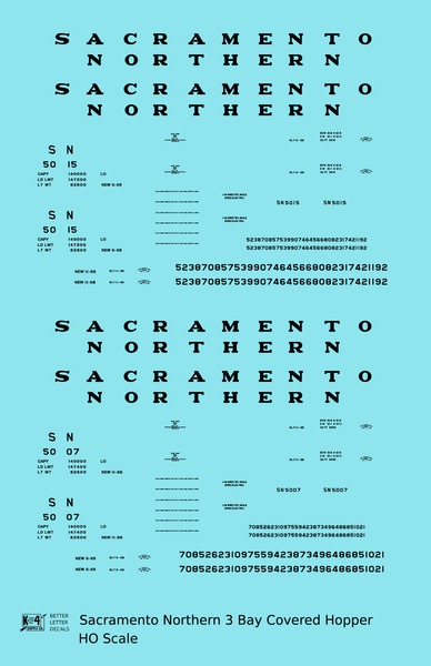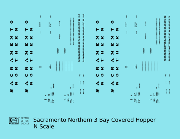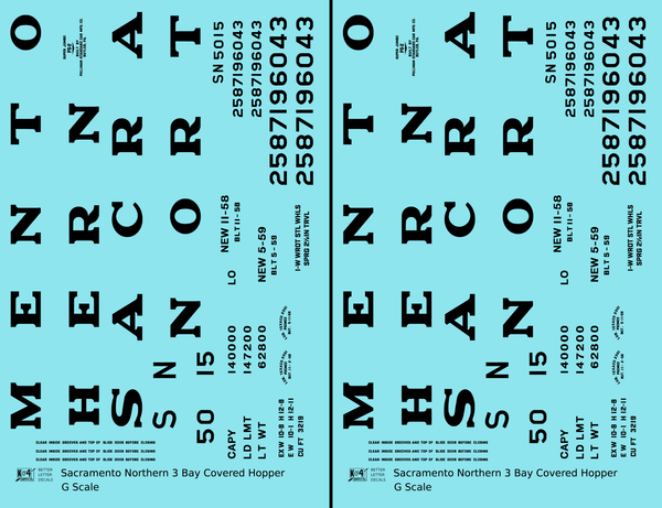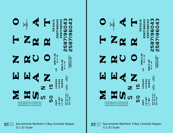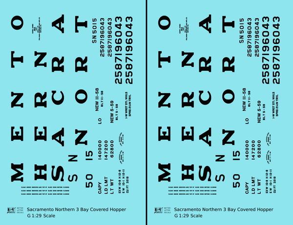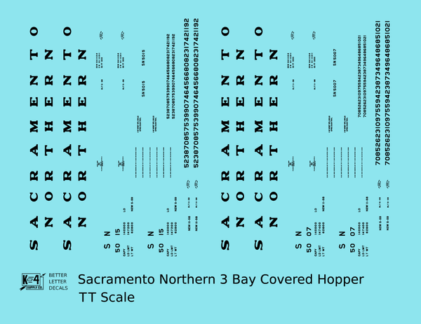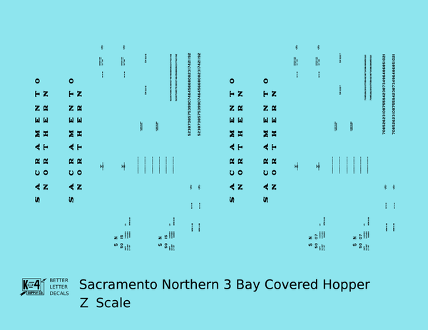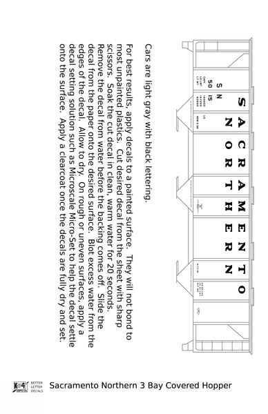Sacramento Northern PS2 3 Bay Covered Hopper Black - Decal - Choose Scale