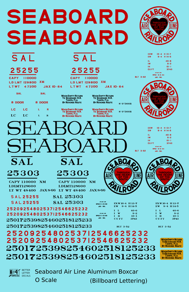 Seaboard Air Line Aluminum 40 Ft Boxcar Red and Black Late Scheme - Decal - Choose Scale